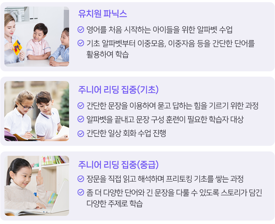 - 유치원, 초등학생, 중학생, 고등학생을 위한